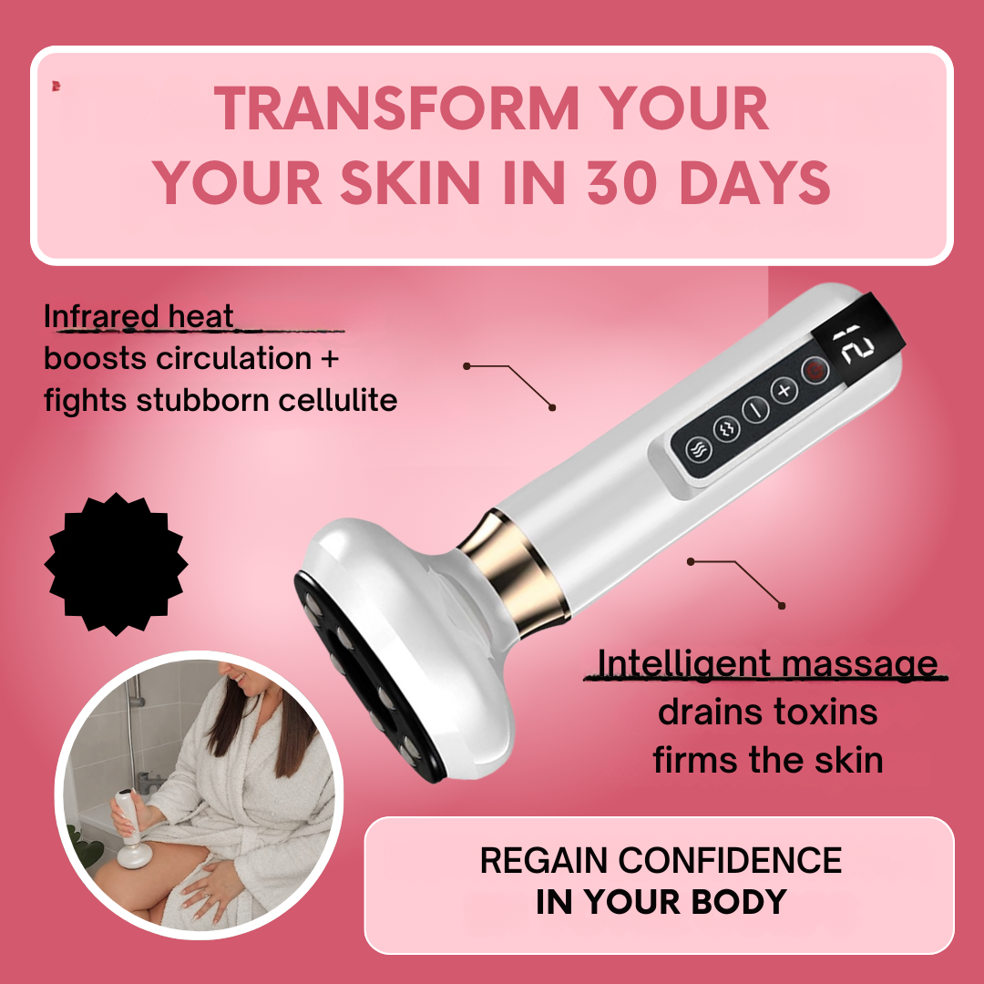 Datorită tehnologiei sale de masaj profund, acest dispozitiv acționează în profunzime pentru a stimula circulația, a netezi pielea și a reduce aspectul de coajă de portocală legat de celulită și de laxitatea pielii.